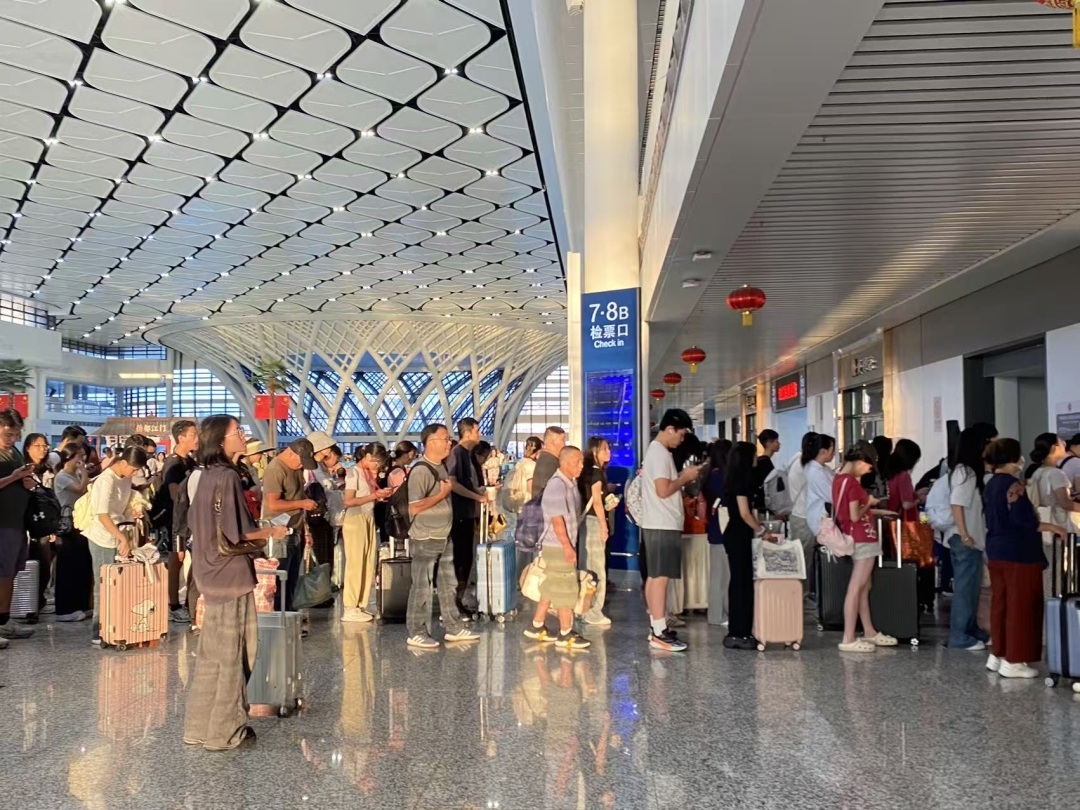 国庆中秋假期临近结束,不少返乡探亲、外出游玩的市民陆续启程返家,江门站也迎来了返程客流高峰。
