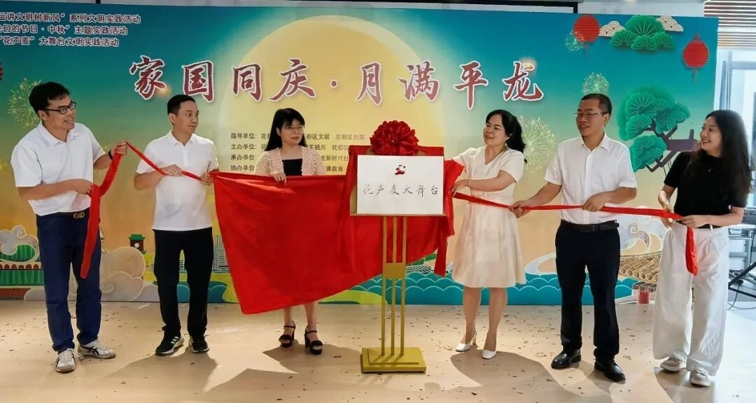 爱国歌曲蕴含着丰富的历史文化和民族情感。在花都区花山镇平龙社区新时代文明实践站近日举办的“家国同庆·月满平龙”活动现场,居民们欢聚一堂,用歌声传递对祖国母亲的美好祝福,用舞蹈演绎庆祝新中国76周年华诞的喜悦,共同谱写了一曲邻里相亲的温暖乐章。值得一提的是,在本次活动中,平龙新时代文明实践特色阵地“花声麦”大舞台正式揭牌。揭牌仪式后,第一场“花声麦”大舞台文明实践活动随即精彩上演。老干曲艺社带来的粤语版歌舞《我和我的祖国》,以深情的演唱和优美的伴舞,将心中对祖国最深沉的爱化作动人旋律,引发了全场共鸣。活动的压轴环节,是所有演员与现场居民共同参与的大合唱《我的祖国》,大家挥动着手中的鲜艳国旗,用嘹亮的歌声表达对祖国最深切的热爱与祝福,现场化作一片红色的海洋,家国情怀在每个人心中激荡。