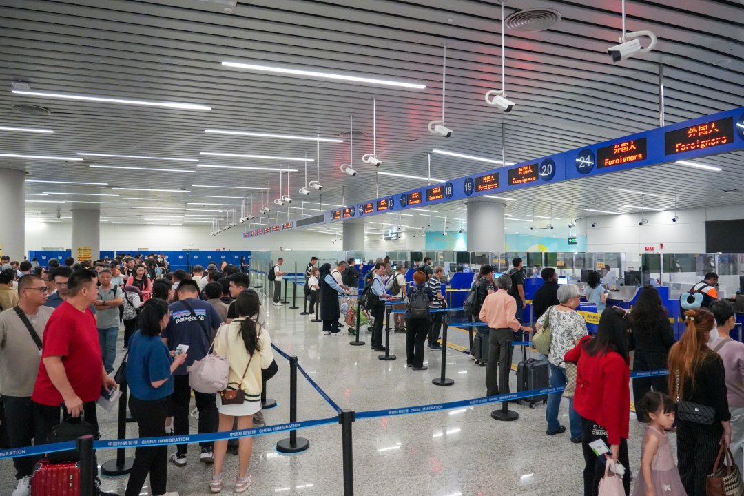 国庆中秋假期,免签政策效能持续释放,也为口岸增添更多“国际流量”。10月7日11时许,从莫斯科飞抵广州的CZ656航班平稳降落。记者在口岸现场看到,百余名俄罗斯籍旅客陆续来到边检入境大厅。白云边检站多语种服务队民警迅速上前,用流利的俄语提供指引,并引导旅客分流候检。其中,有不少旅客首次运用免签入境政策来华。