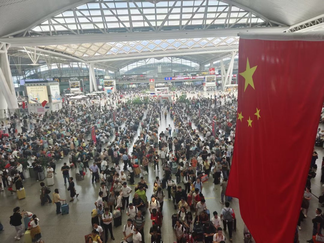 整个国庆中秋8天假期里,广州南站累计到发旅客606万人次,日均75.7万人次;累计发送旅客307.7万人次,累计到达旅客298.3万人次。这个国庆中秋假期,成为广州南站历史上“最火”的小长假。