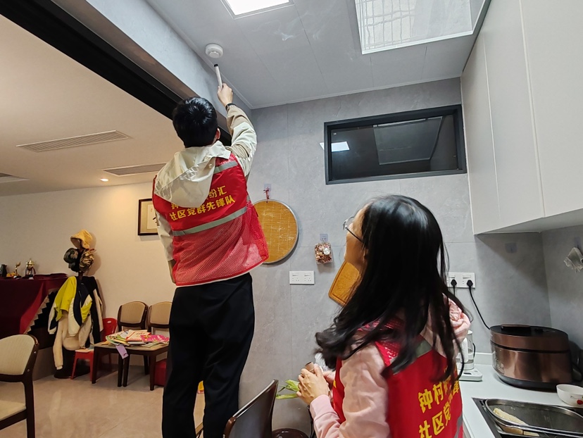 钟村街缤纷汇社区常住人口达7万多,老人独居或双老家庭基数大。减少长者居家安全隐患,提升其生活品质成为社区党委的“心头大事”。在广泛调研(的基础上,社区党委通过发动党员认领微心愿和社区慈善基金筹集等方式,为老年人家庭免费引入适老智能设备。项目已为53户家庭安装了烟雾报警器,102户家庭安装平安钟。