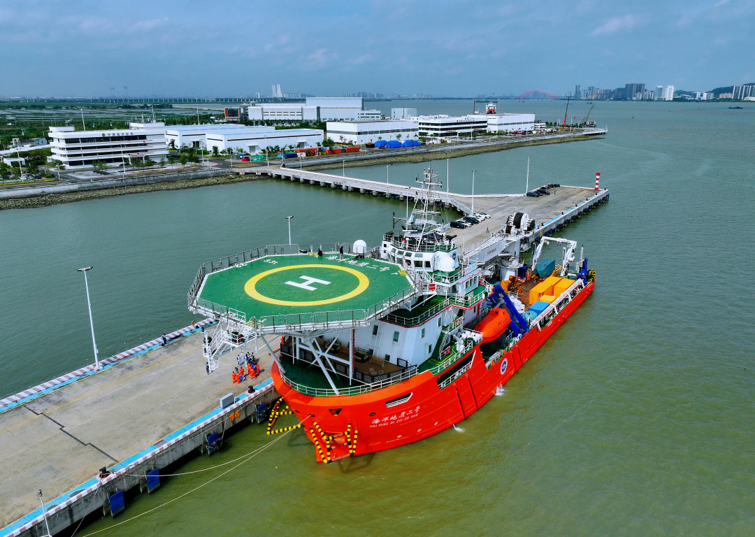 2025年9月28日,“海洋地质二号”科考船顺利靠泊广州海洋地质调查局科考码头,科研人员把“源火”盒转移至岸上特定区域保存。