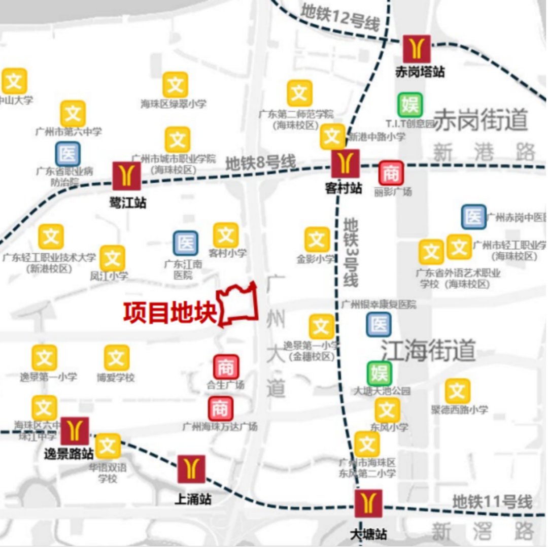 该地块位于海珠区中部核心区,地理位置优越,紧邻城市南北主干道广州大道南,可快速衔接新光快速、环城高速等重要交通动脉,便捷通达珠江新城、广州国际金融城等繁华地带。同时,地块周边地铁站点密集、公交线路众多,公共交通覆盖全面,交通优势显著。