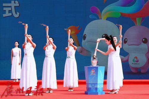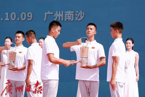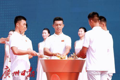 十五运会广东赛区执委会、残特奥会广东赛区执委会、香港赛区筹委会和澳门赛区组委会代表分别受领火种。