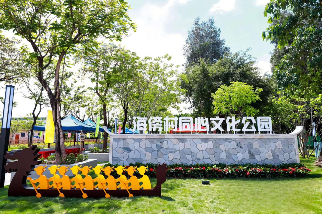 类似的成功案例还有很多。今年6月27日,由番禺区政协常委、区社联会会长、工商联常务副主席、电缆集团有限公司董事长王锦荣捐资200多万元建设的石碁镇海傍村同心文化公园正式交付启用。海傍村同心文化公园的前身是村内一片废弃地,如今这里已变成打卡地标。公园紧邻村内幼儿园和小学,园内景观步道蜿蜒、休憩广场敞亮、绿化景观错落有致,设有儿童活动区、健身区、休闲区及“三小园”(小花园、小果园、小菜园)等四大功能区,集休闲、文化、生态功能于一体,为村民提供了日常散步、健身、社交的优质空间。这座承载着乡村发展希望的文化公园,不仅是“百千万工程”在基层落地的生动实践,更是热心企业家反哺家乡、助力乡村振兴的有力见证。
