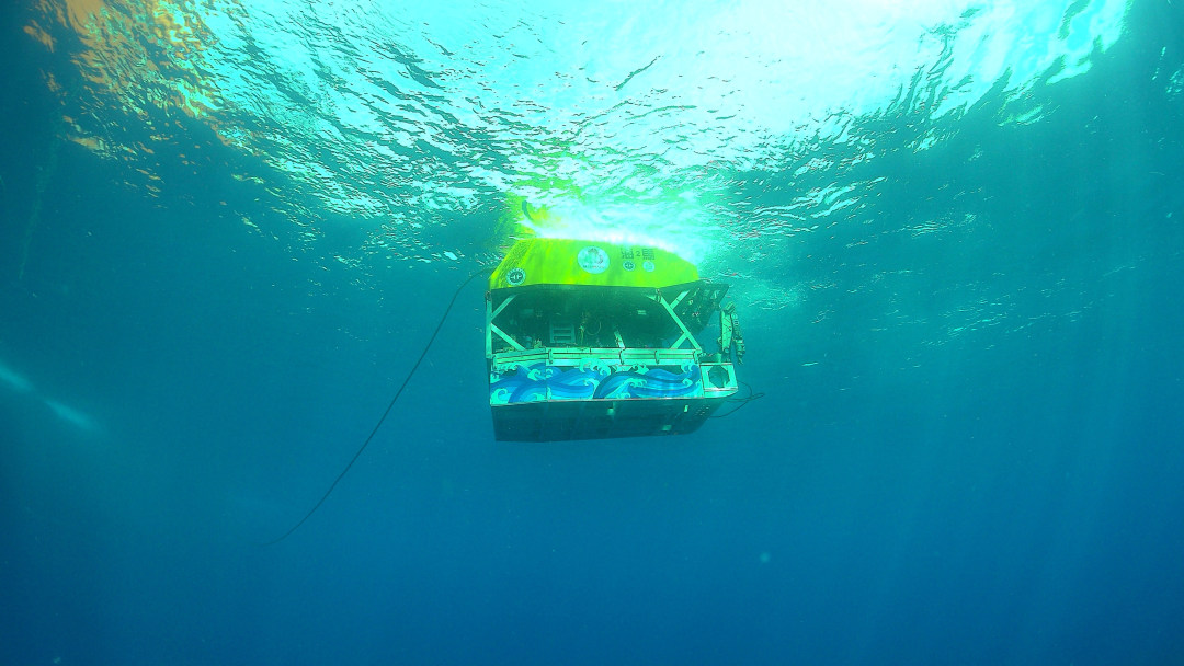 “海马”号深海遥控潜水器(ROV)入水瞬间。