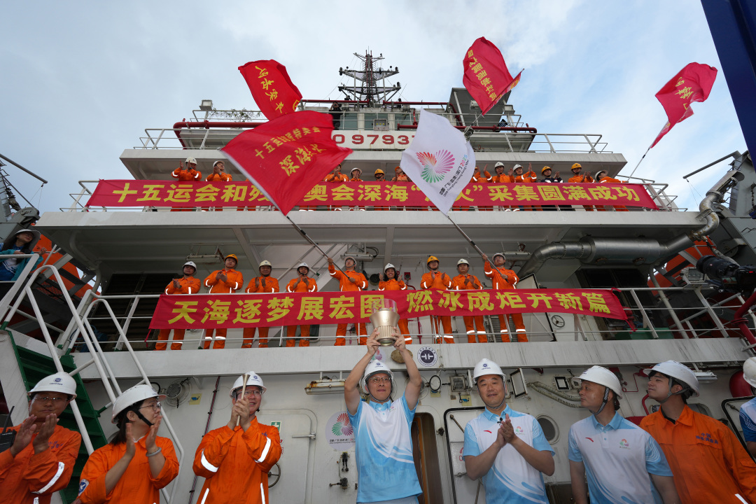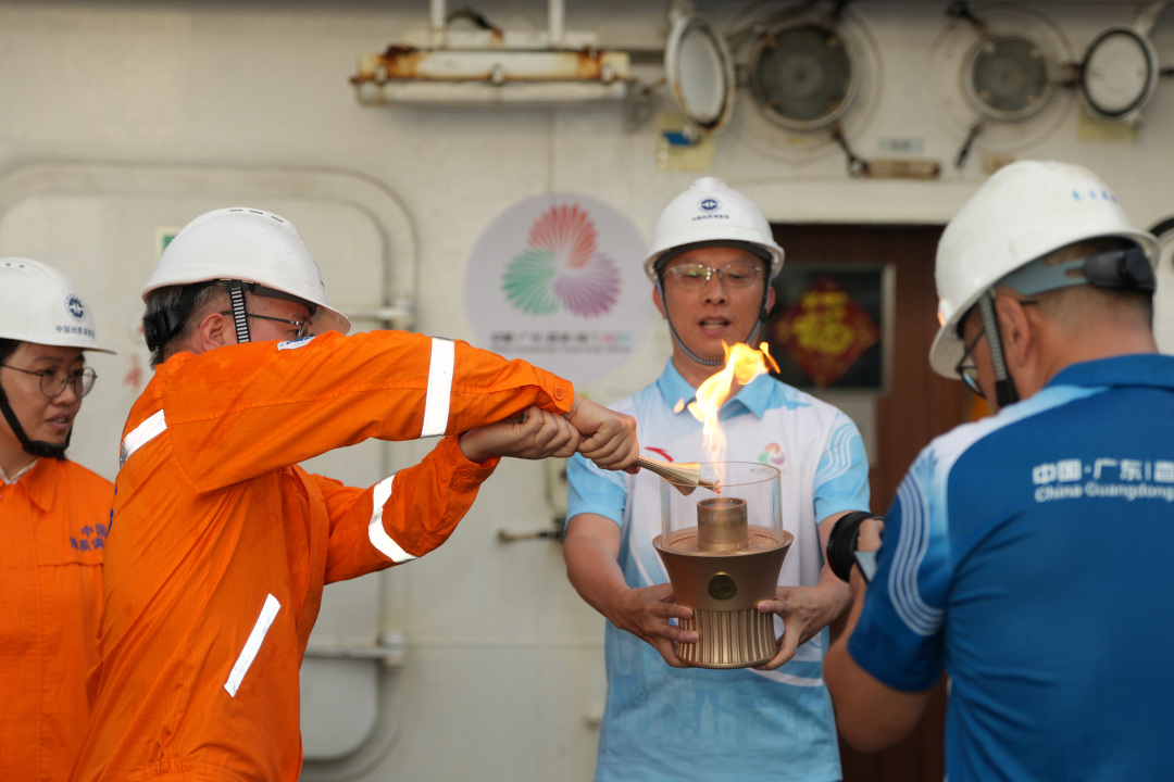 作为“梦想”号大洋钻探船配套保障船的“海洋地质二号”科考船承担了十五运会和残特奥会“源火”采集任务,采火团队以重走“海上丝绸之路”为脉络,利用大国重器,在南海北部海域1522米深海处完成“源火”采集,引天之光,燃海之冰,深度融合海洋强国、科技强国与体育强国战略,彰显了粤港澳大湾区协同发展的蓬勃生机,也是《南沙方案》的生动实践。