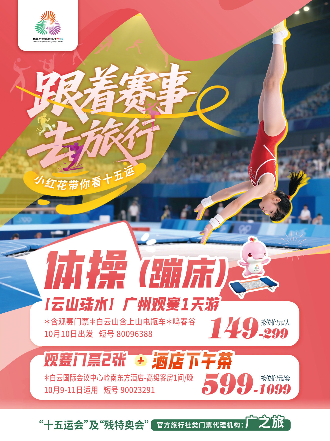 今天距离第十五届全国运动会开幕还有30天。此前,经十五运会和残特奥会旅行社类门票代理机构征集评审会综合评定,岭南集团旗下广之旅成功中标“十五运会和残特奥会旅行社类门票代理机构”资格。为此,广之旅同步推出首批“我在湾区看全运”观赛旅游产品,助力公众实现“跟着赛事去旅行”的沉浸式观赛体验。市民大众可通过广之旅官网、易起行APP、微商城等线上平台,以及全国数百家线下门店咨询报名。即日起至11月9日,市民游客报名相关产品即享全运月双重礼遇。