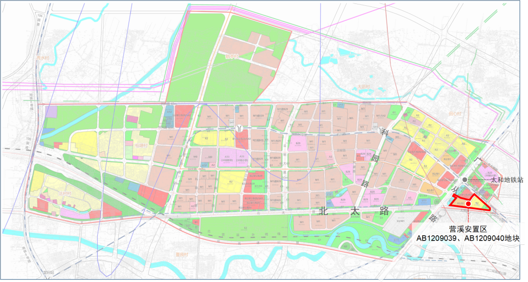 该地块西侧、南侧分别紧邻广从路、太营路,距离地铁十四号线太和地铁站A出口约50米。宗地面积43731平方米,可建设面积30120平方米,计容建筑面积97346平方米。同时,该地块位处广州民营科技园核心区范围内,明确为白云区大沥村、田心村、营溪村、柏塘村城中村改造项目的安置地块,用于拆迁安置。