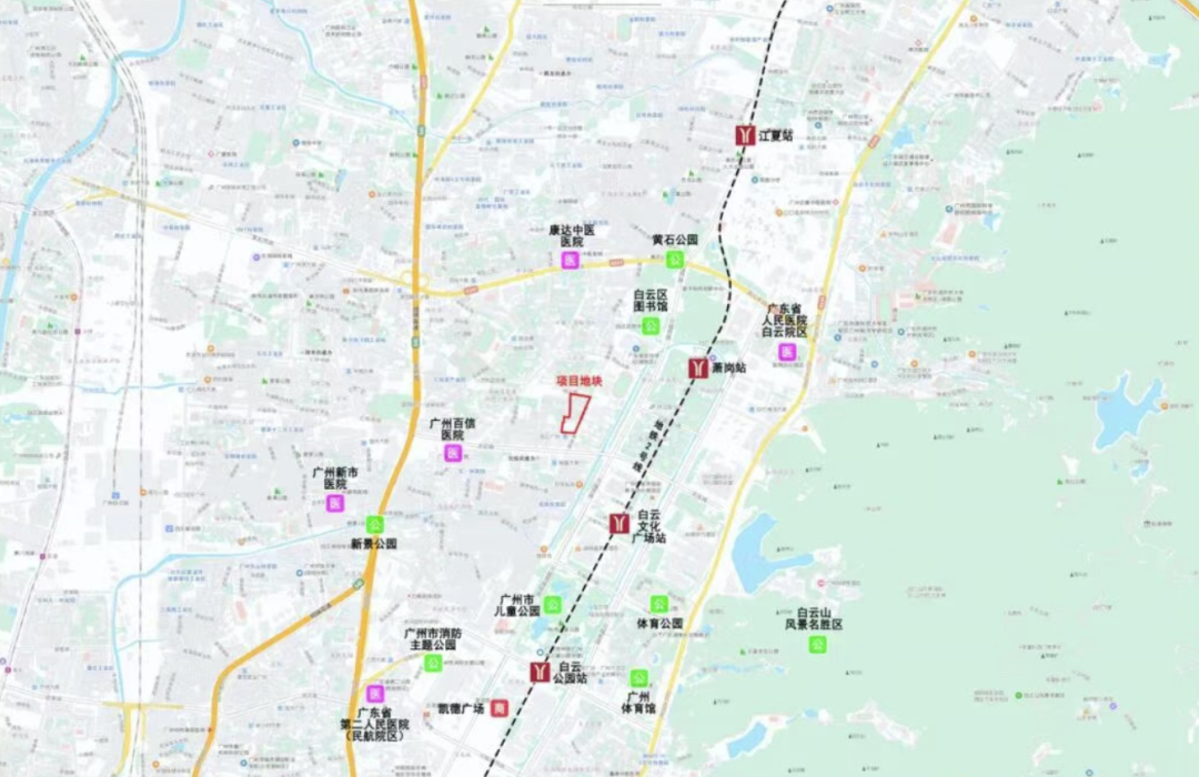 地块优势在于其为云山珠水轴(白云山-珠江西航道)的重要节点,地处白云新城核心区,临近广州地铁二号线、十二号线白云文化广场站和萧岗站,距白云国际会议中心1公里,距白云机场约25公里,与广州火车站、广州白云站均相距不远,区位优势明显。