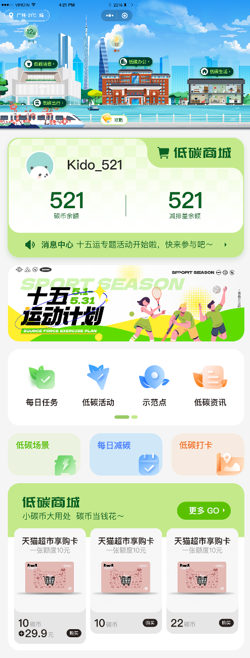 打通个人与组织碳账户,构建消纳闭环。平台首创组织减碳系统模块,实现个人与组织碳账户的互联互通;同时联动碳普惠商家联盟,将市民的减排量转化为购物折扣、服务优惠等可直接获益的资产,构建起“减排—消纳—再激励”的良性循环生态。真正实现“行为数据—碳资产—经济价值”的有效转化。