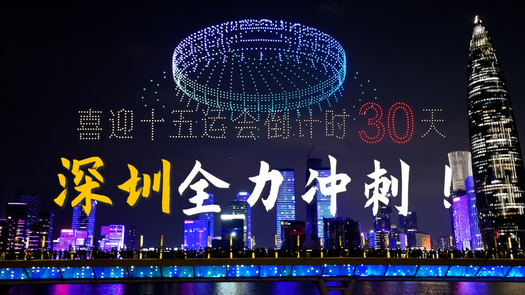 10月10日,第十五届全国运动会开幕进入30天倒计时。作为本届全运会重要赛区,深圳当晚通过地标亮灯、无人机表演等活动,营造浓厚赛事氛围。