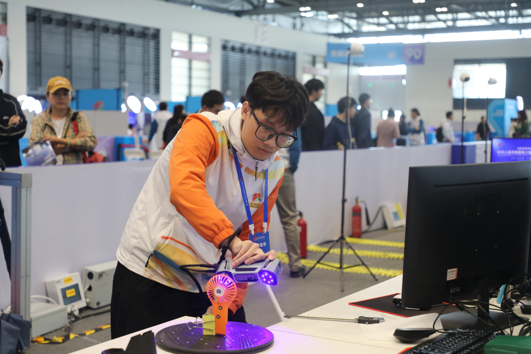 第47届世界技能大赛自主移动机器人项目冠军、广工贸选手方灿豪在第三届国赛广东展厅展示轮腿机器人