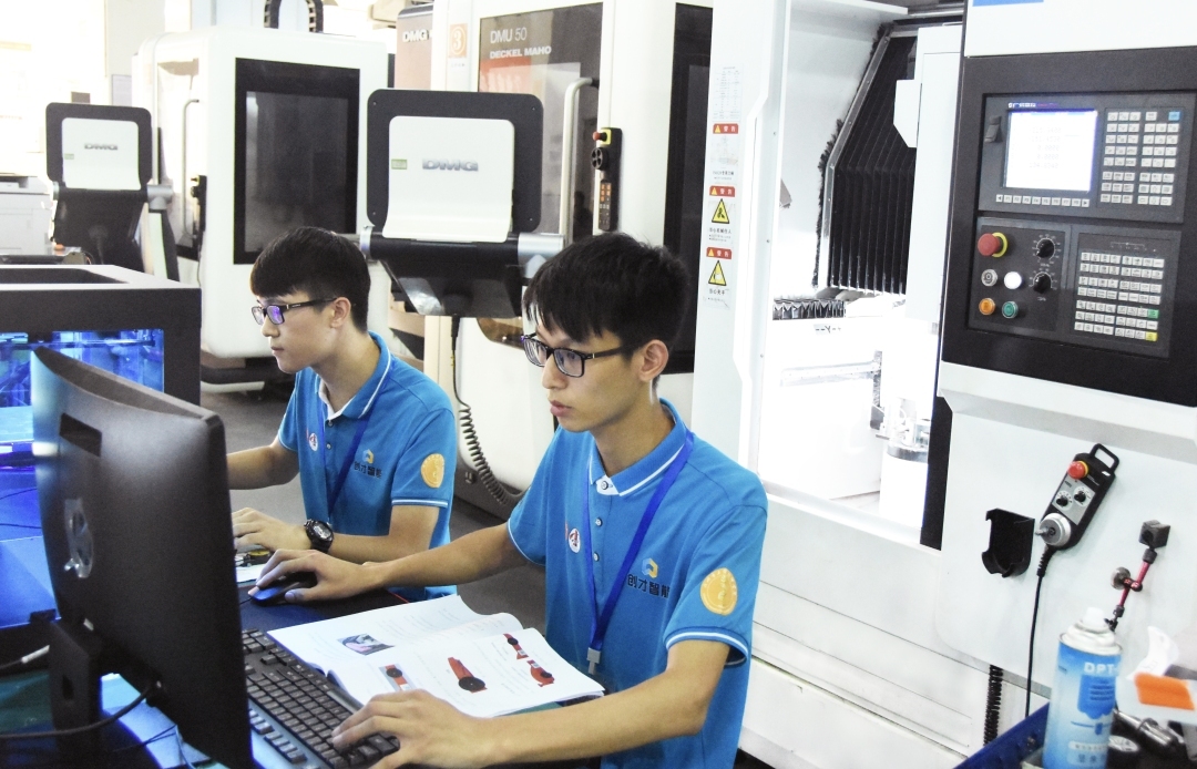 广工贸数字化设计与制造专业学生在工作站专注地绘制输出工作成果