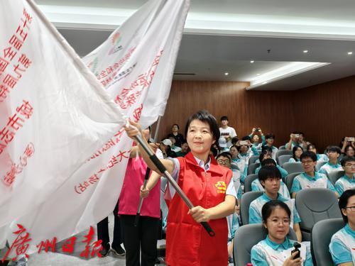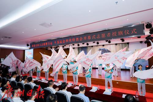 为十五运会和残特奥会开幕式志愿者、城市志愿者授旗。