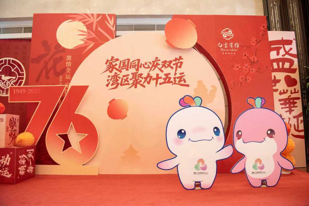 和往届不同,第138届广交会期间正值十五运会举办前夕,广州喜迎全运会的氛围浓厚,来广州参与广交会的客商也能从酒店内感受到浓浓的全运氛围。在白云宾馆,酒店大堂设立了全运会文创商店,各种全运会的吉祥物、纪念徽章、冰箱贴、手机挂坠形式多样、创意有趣。从10月初开始,酒店内就增加了全运会元素的氛围布置,宾客可与“喜洋洋”“乐融融”互动合影,让八方来客近距离感受大湾区全运会的多彩与热情。