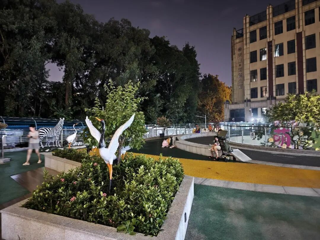 改造中,街道更融入“海绵城市”理念,使用透水砖翻新主干道、人行道及云鹤北街风雨长廊,涉及面积达1410平方米,有效解决雨天积水问题;此外,社区还积极协同广州动物园开展水体与绿化维护,在风雨长廊布置35幅动物展画,将街角围墙、配电箱变为动物与环保主题创意画布,让居民“推窗见绿、出门遇景”,打造名副其实的“生物多样性友好社区”。