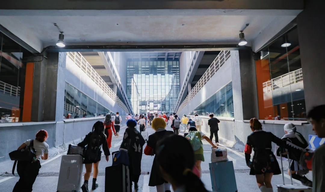 从全国各地远道而来的动漫爱好者们穿着各具特色的cos服,画着精致的妆容,齐聚在这场动漫盛会上。他们中有些人是为了见到自己喜欢的漫画创作者,有些人是为了“吃谷”,还有些人只是为了感受漫展现场火热的氛围。