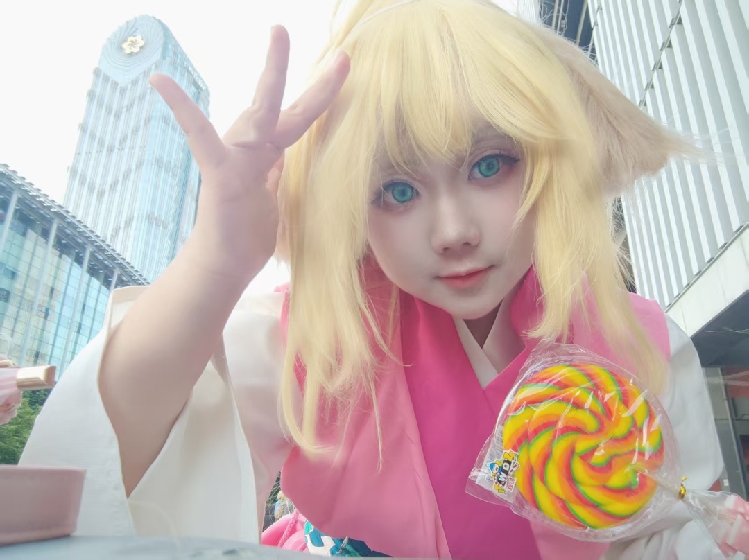动漫里的涂山苏苏有着金橘色头发、狐狸耳朵以及碧绿瞳色,这些元素豆豆都尽可能地进行了还原,服装以粉色和白色为主,长裤膝盖处系有绳子,鞋子上还有毛球,看过《狐妖小红娘》的人一眼就能认出她扮演的角色。豆豆透露,她提前一两周开始准备,购买角色服装、假发、美瞳,并提前约好做妆发的造型师;此外,她还准备了送给其他coser的免费周边产品。“每个人的开销不同吧,看你对妆娘(为coser化妆的化妆师)和毛娘(为coser打造假发造型的发型师)手艺的需求,以及cos角色服装的繁简程度和做工。”豆豆向记者解释道,“一般的花销从几百元到几千元不等,我个人是控制在500元左右。”