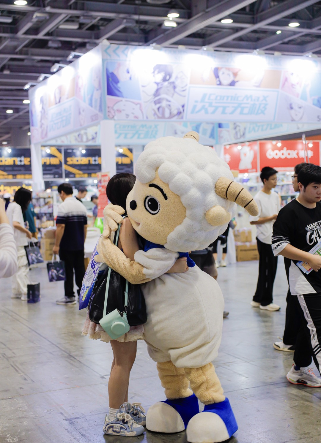 动漫爱好者在漫展现场与动漫角色互动