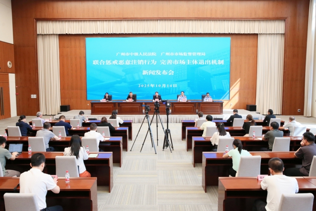 10月14日,广州市中级人民法院、广州市市场监督管理局联合举办新闻发布会,共同签署《关于联合惩戒恶意注销行为 完善市场主体退出机制的工作备忘录》(以下简称《备忘录》)并发布典型案例。
