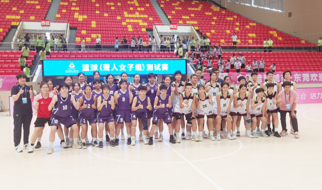 全国第十二届残疾人运动会暨第九届特殊奥林匹克运动会(以下简称“残特奥会”)篮球(聋人女子组)正赛将于2025年12月7日至16日在东莞市体育中心体育馆举办。为综合检验残特奥会篮球(聋人女子组)各项筹备工作,今天(10月14日)上午,“残特奥会”篮球(聋人女子组)测试赛在东莞市体育中心体育馆举行。经过激烈的比拼,女子聋人篮球队广东队以64:52的比分战胜东莞城市学院女子篮球队。赛后,女子聋人篮球队广东队的教练和队员均点赞比赛场馆,并表示希望在正赛时,全队可以赛出好成绩。