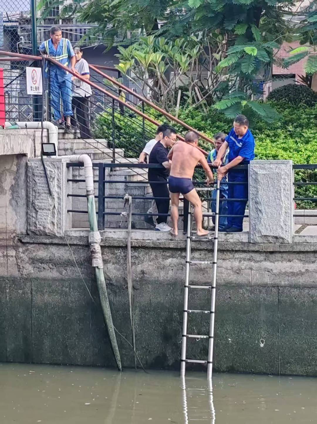 10月14日下午,广州天河区车陂街西湖社区河长潘仲灵在日常巡河至石路街涌河段时,突然发现一名群众不慎坠入河中,由于水面离岸边太高,落水群众曾多次尝试,都无法上岸,情况较为危急。
