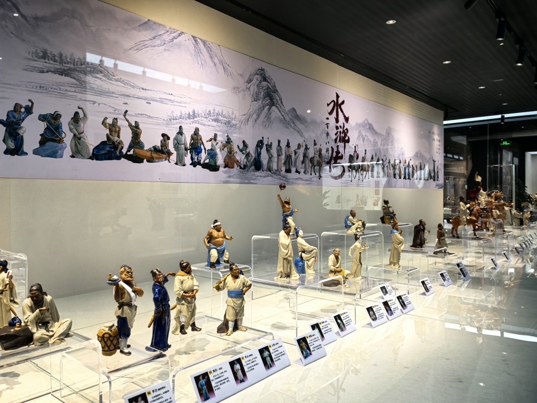 其中大型组塑《水浒传一百零八将》在中国大陆首次震撼展出。这套经典巨作是1987年石湾美术陶瓷厂承接的大型人物组塑,由中国工艺美术大师刘泽棉领衔和弟弟刘炳、儿子刘兆津、女儿刘健芬,以长篇小说《水浒传》108位梁山好汉为原型,历时500天创作而成。作品在1989年和1990年先后荣获第八届百花奖优秀新作品一等奖和全国陶瓷行业评比创新设计一等奖。这组唯一传世的 石湾陶艺组塑当日被陶艺大师馆收藏。