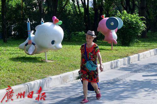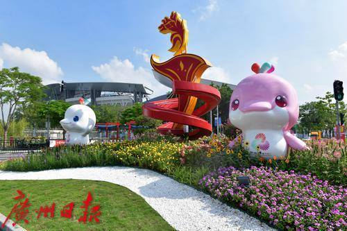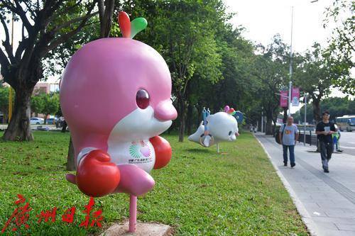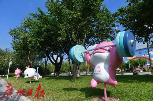 天河优托邦前的绿化带上放置了全运会吉祥物。
