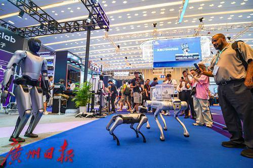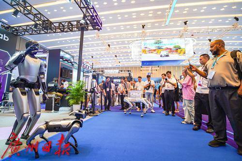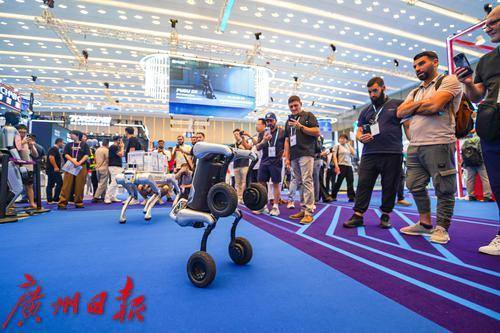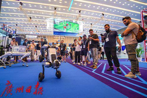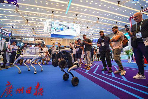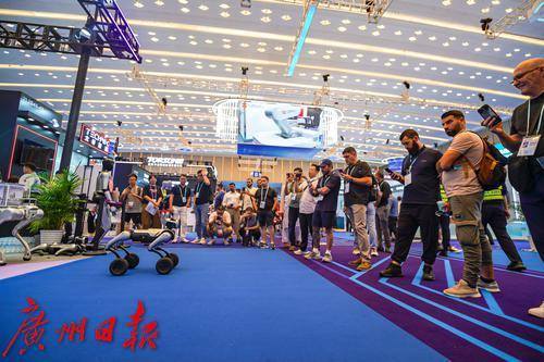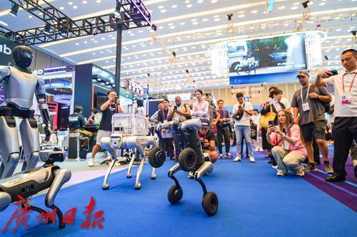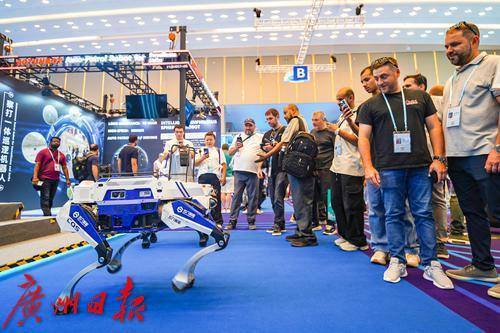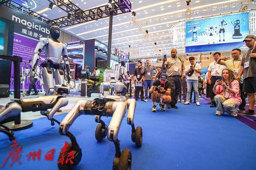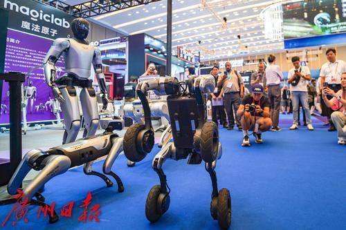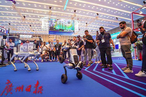 魔法原子的多款机器人、机器狗集中表演吸引大批采购商围观。