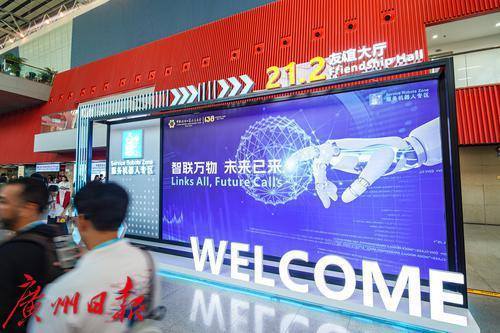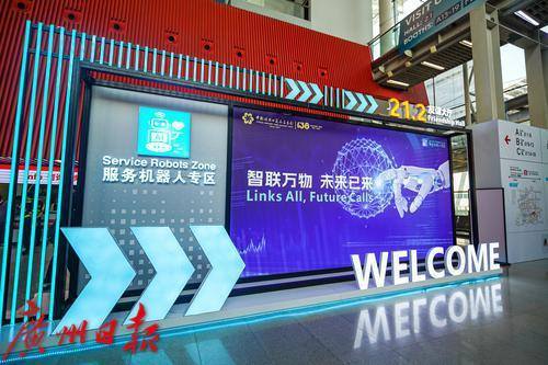 广交会展馆内,到处都设立了服务机器人专区的指引标识。