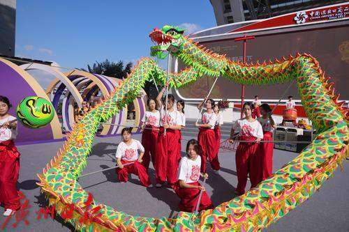 热闹的舞龙舞狮非遗文化表演。