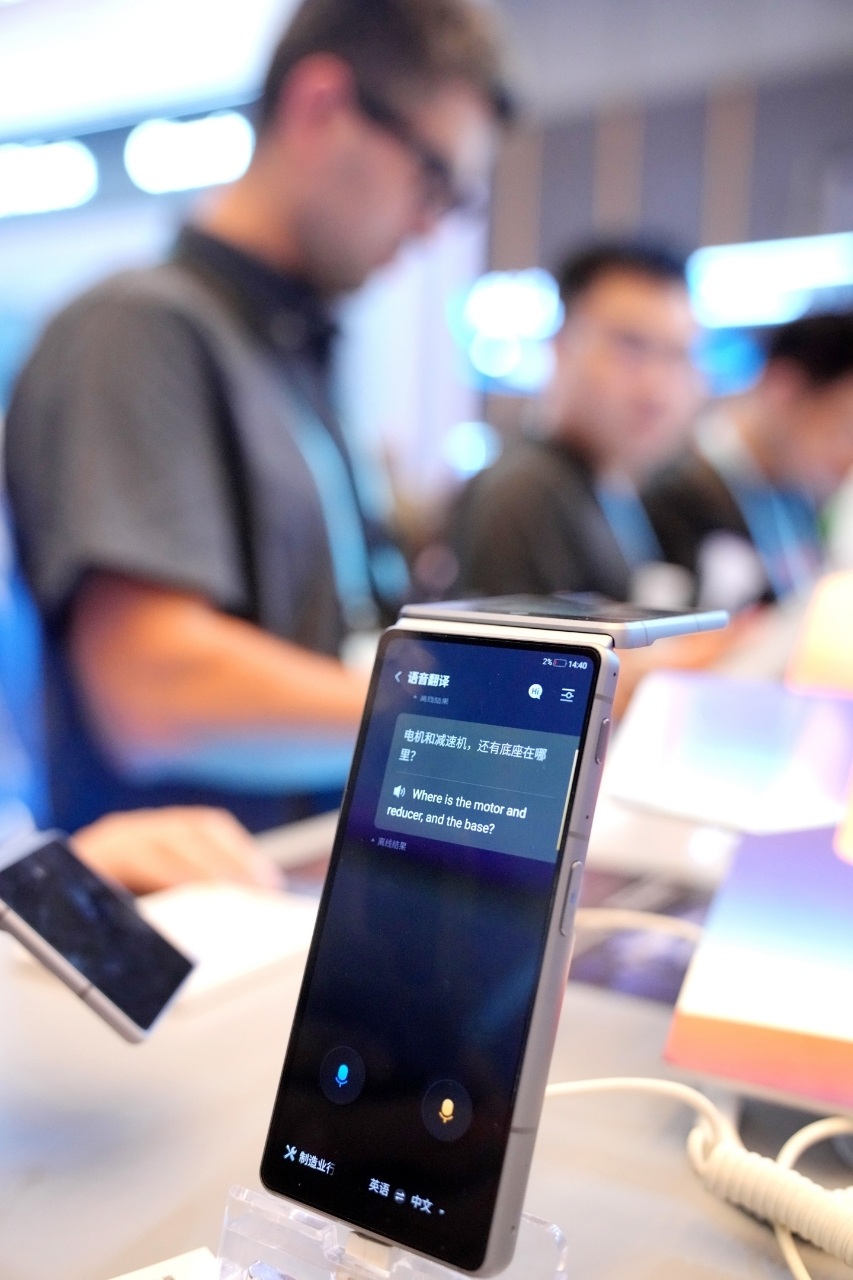 “翻译又快又准!” 在展区现场,科大讯飞双屏翻译机 2.0 收获众多外商青睐,不少客商当场下单。这款产品凭借硬核性能,成为展会跨语言沟通的 “明星装备”。