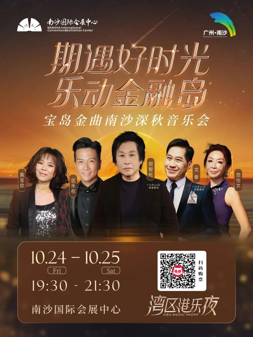 2025年10月24日-25日,湾区港乐夜“期遇好时光,乐动金融岛”——宝岛金曲·南沙深秋音乐会将在南沙国际会展中心盛大开演,郑智化等将带经典金曲亮相音乐会,快来参加!