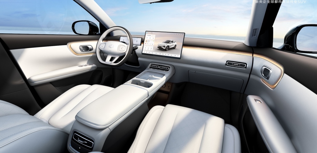 安全防护上,电池防水等级达IPX8,支持24小时全场景安全后台监测;车身采用“九横五纵笼式结构”,高强度钢占比80%,搭配6安全气囊,构建全方位安全防护。