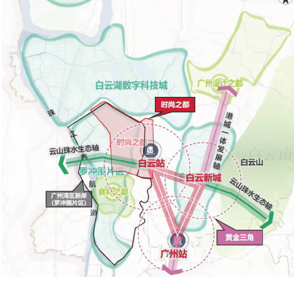 同时,白云区以广州白云站为核心,紧抓开通运营的机遇,打造7.8平方公里的“广州时尚之都”,瞄准研发设计、展贸、体验、个性定制等高端环节,带动周边服装皮具等专业批发市场蝶变升级,建成具有国际竞争力和市场影响力的现代时尚产业集群,打造全球时尚产业高地、国际新锐时尚之都,推动广州白云站与广州火车站、白云新城构建“黄金三角”国际商圈。
