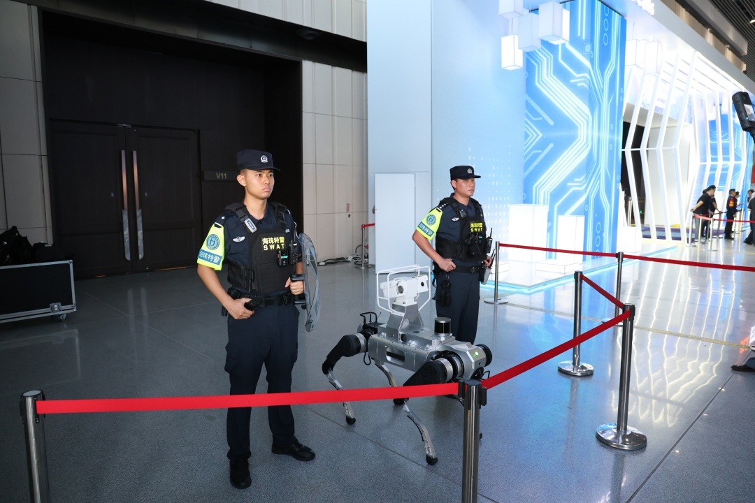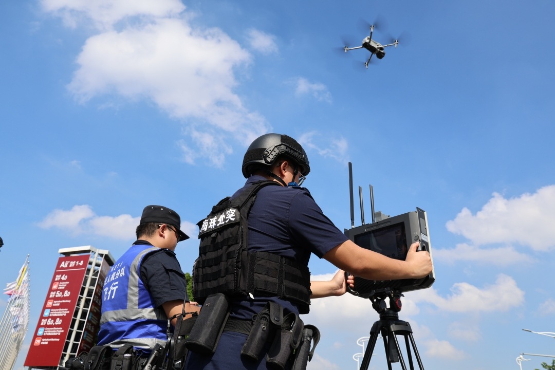 在展馆及周边区域部署特警武装应急处突力量,特警队员携警犬进行不间断巡逻与定点守护。同时,海珠警方加强无人机侦测反制,坚决打击、制止无人机“黑飞”行为,强化实兵巡查,进一步提升场馆安全保障水平。