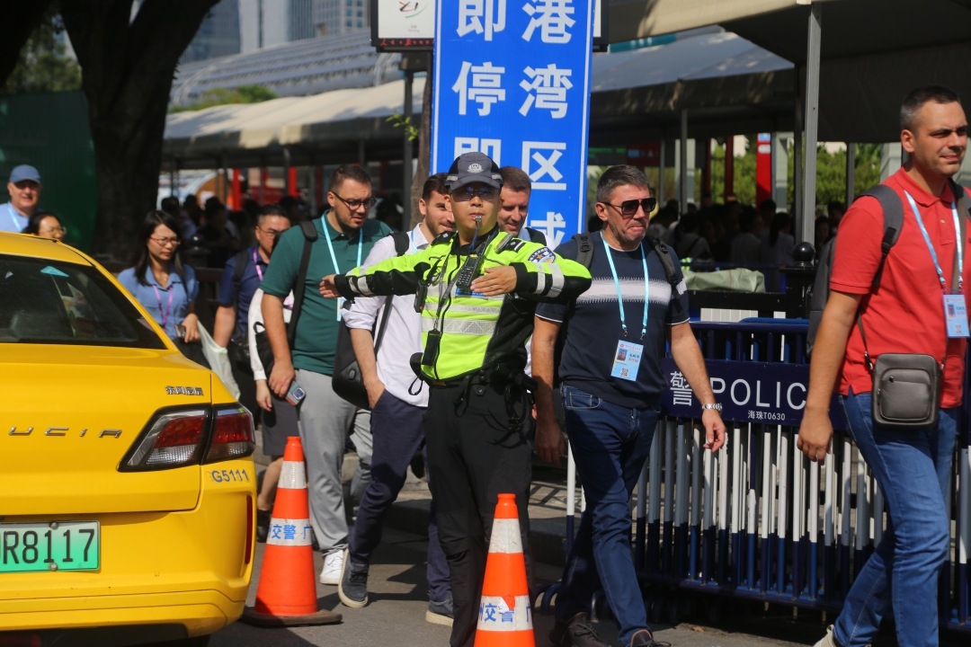 “针对广交会展馆周边道路交通特点,我们提前会同交管部门深入调研,科学规划交通流线,实施‘潮汐式管理’策略,有效缓解了高峰期路面交通压力。”海珠警方介绍。为了持续深化场馆周边安全工作,海珠警方联合交通运输部门加强出租车和网约车等重点车辆管理,完善轮候进馆机制,新增临时上客点,并通过线下指引标志和广播宣传等方式引导客商和乘车人员有序候车。