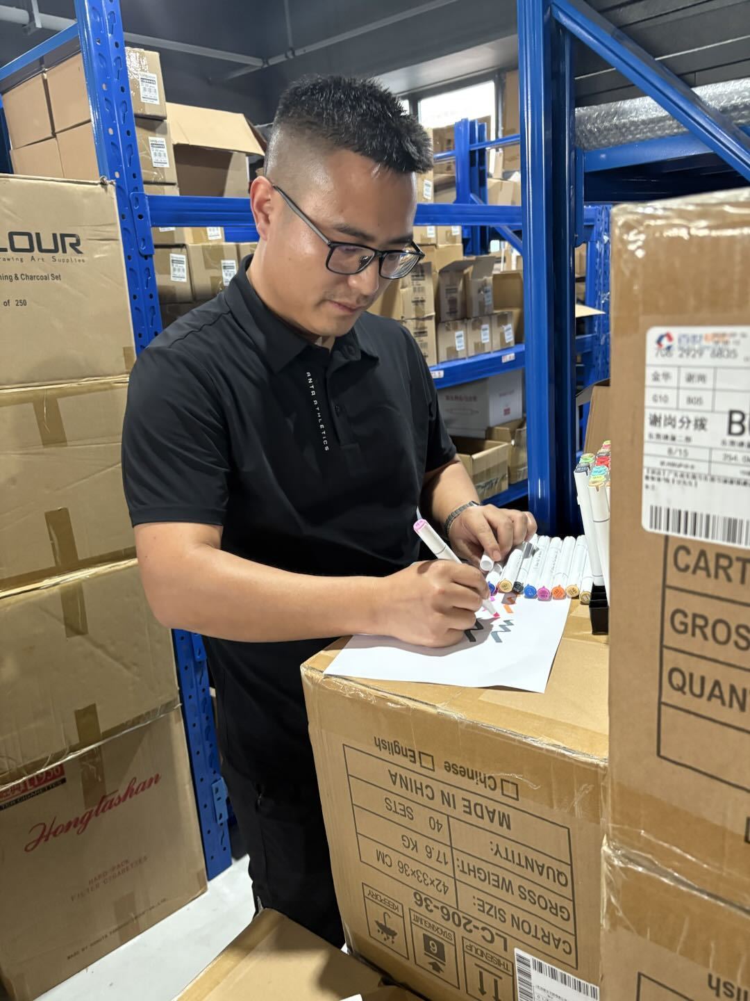 品牌化的另一层意义,是品质与安全的自我要求。甘传威介绍,自研产品使用进口丙烯墨水,从原料到成品,每一步都通过欧盟和美国环保认证。就连马克笔的包装也在不断迭代:收纳盒升级为可折叠式包装,打开时各色笔整齐排列、拿取方便。 “有用户留言说‘盒子太漂亮,舍不得扔’,这些小细节就是我们想留下的品牌记忆。”甘传威笑着说。
