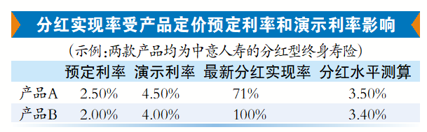 业内人士介绍,分红实现率反映了保险公司实际分配的红利与产品宣传时演示红利的匹配程度,但只能作为评估公司投资能力的指标之一。慧择保险经纪保险产品总监叶鹏程认为,分红实现率受产品定价预定利率和演示利率的影响大。如果演示利益保守,分红实现率就会高,但不代表客户的分红收益更高,甚至会出现分红实现率高的产品,实际客户收益更低的情况。