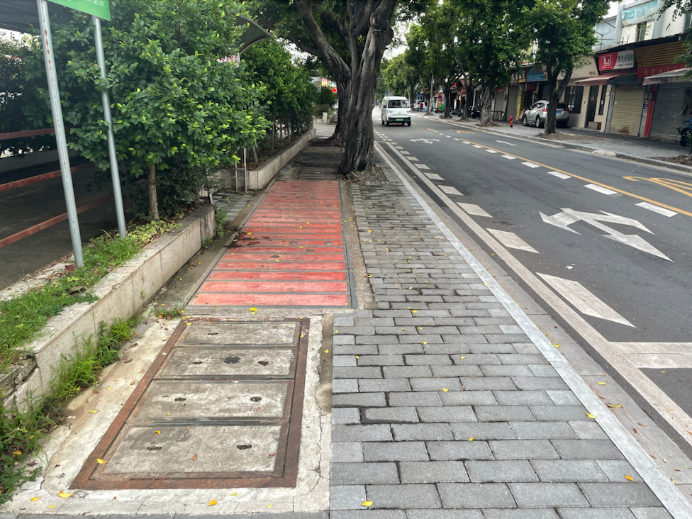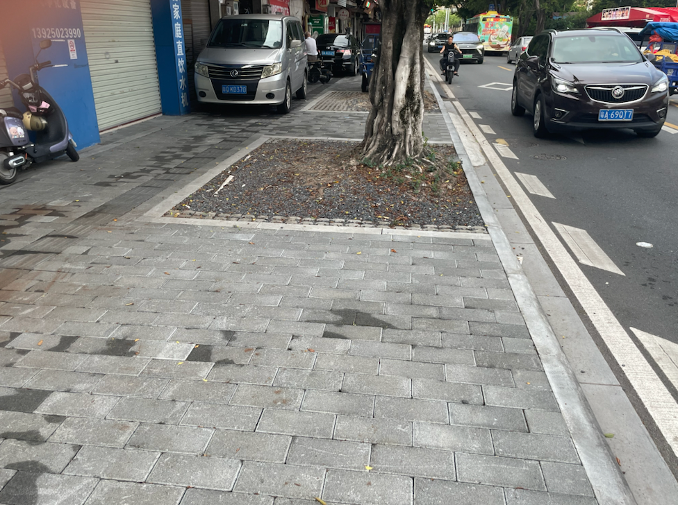 本次人行道升级进一步恢复了人行道的平整性,同时设有盲人道、止车石等,进一步规范和完善人行道的功能性,提升市民日常步行安全感和舒适感。