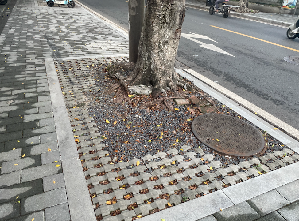 此外,人行道道旁树下的花基也重新整修。此前,由于道旁树的树根凸起,导致路面凹凸不平,大量地砖移位翘起,给行人的通行带来了很大不便。