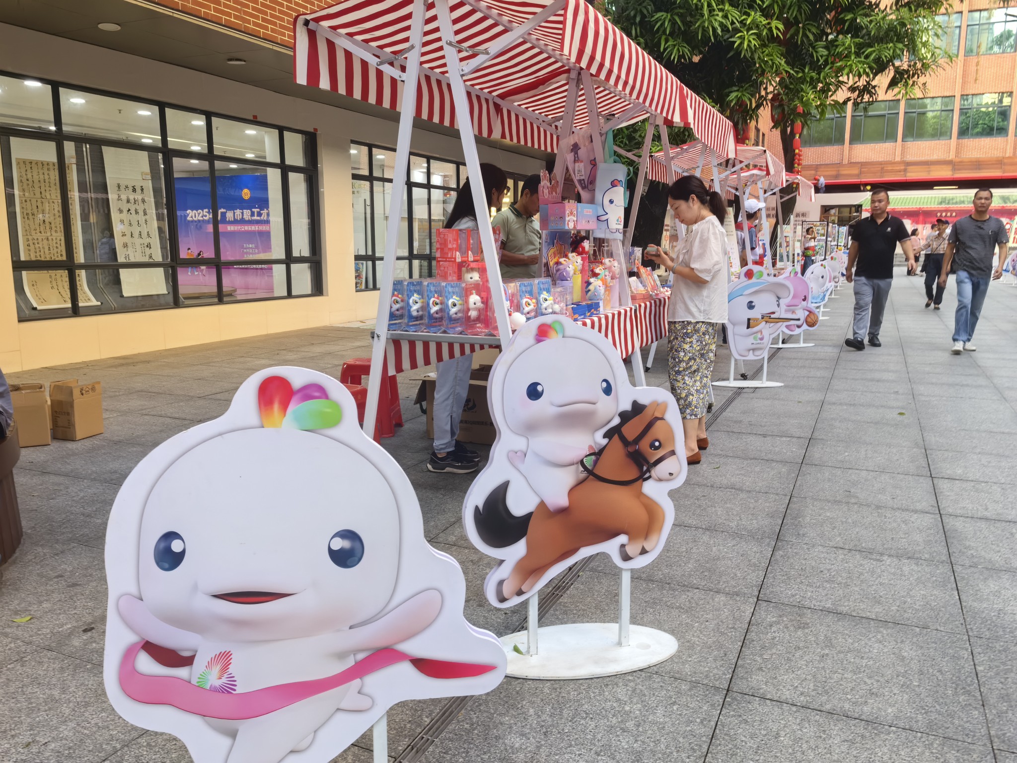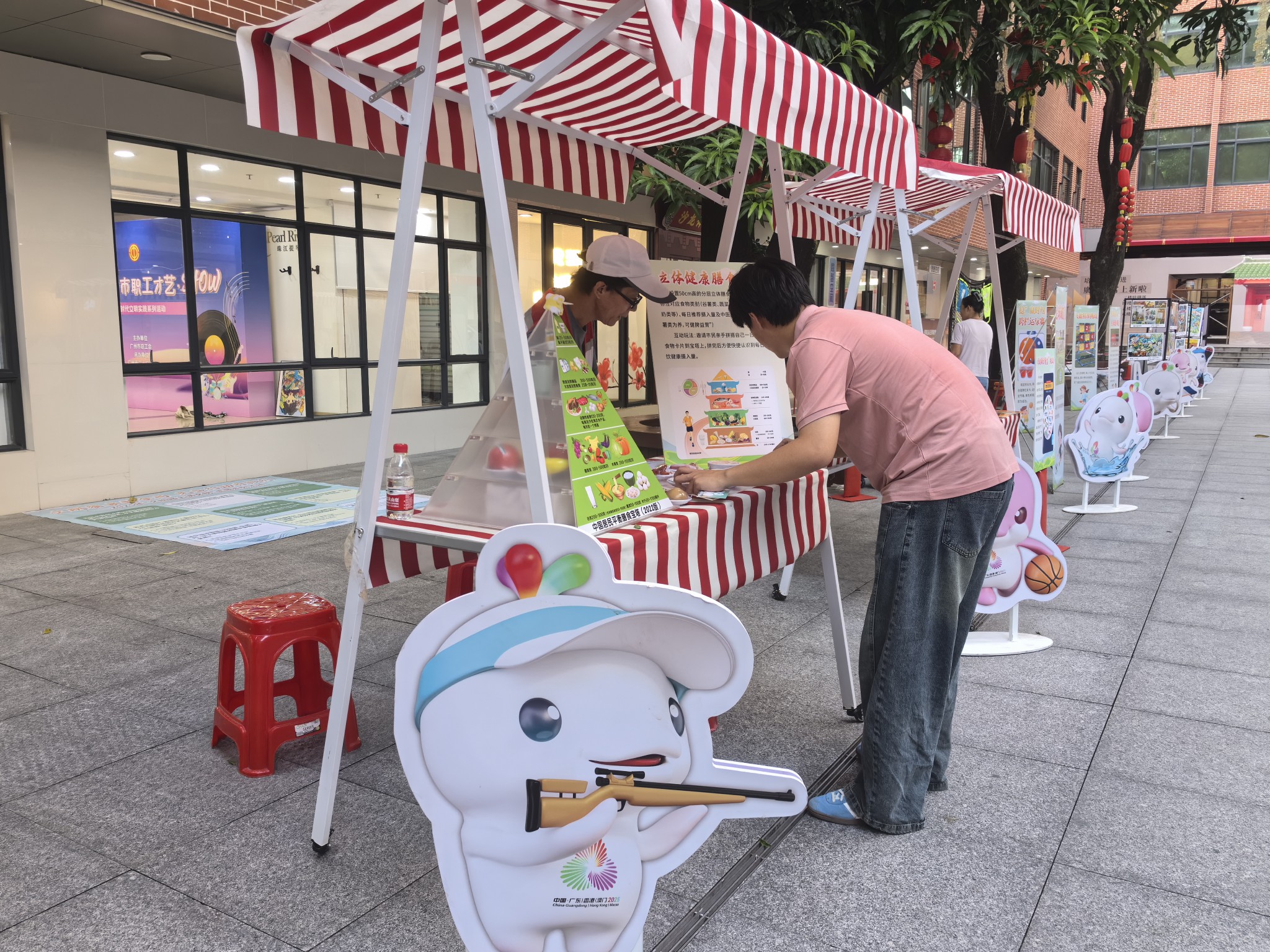 “十五运”互动区深受群众喜爱,市民可参与趣味跨栏、足球破门、飞盘挑战、毽子体验、木射游戏等,在“跑投踢射”中尽情享受运动乐趣。现场十五运体育造型公仔立牌憨态可掬、形态各异,以可爱形象吸引市民参与打卡互动。