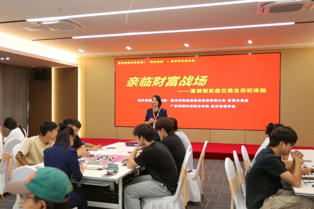 据了解,广东创新科技职业学院与惠州市富爸爸教育投资有限公司于2024年7月建立校企合作关系,双方合作开展“财富实盘”订单班项目。经过一年多的培养,首届学生已顺利进入企业实践。