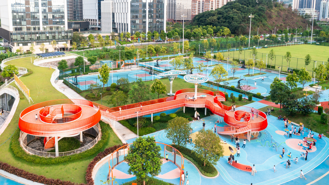 近日,广州市黄埔区全龄智能体育公园对外开放。作为迎接全运会的广州千处惠民体育设施重点项目之一,这座占地约4.7万平方米的现代化公园,服务人口约12.45万人,设有1个11人制标准足球场、4个篮球场、2个网球场和5张乒乓球桌,满足不同运动爱好者的需求,还有专为儿童打造的色彩明快、设施丰富的游乐天地,包含攀岩墙、吊环、沙池等多个项目。