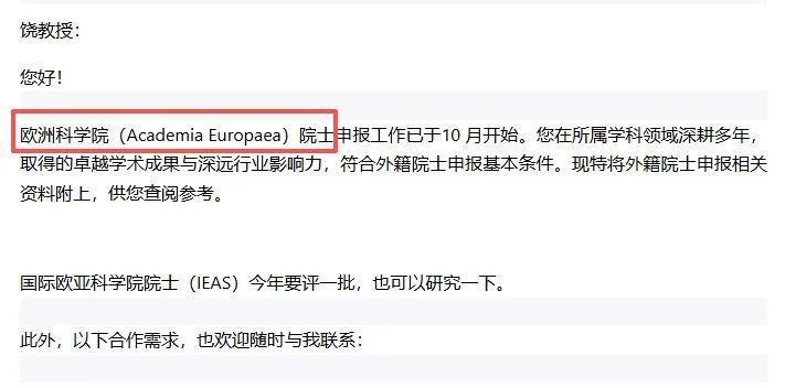 此外,一位往届的欧洲科学院院士告诉记者,他当选时没有花过钱,申请也并不是为了“虚名”,而是为了今后更多与欧洲等地区的交流合作。自己和同事也曾收到过这样的邮件,都会觉得“一眼假”,直接就将对方拉黑了。