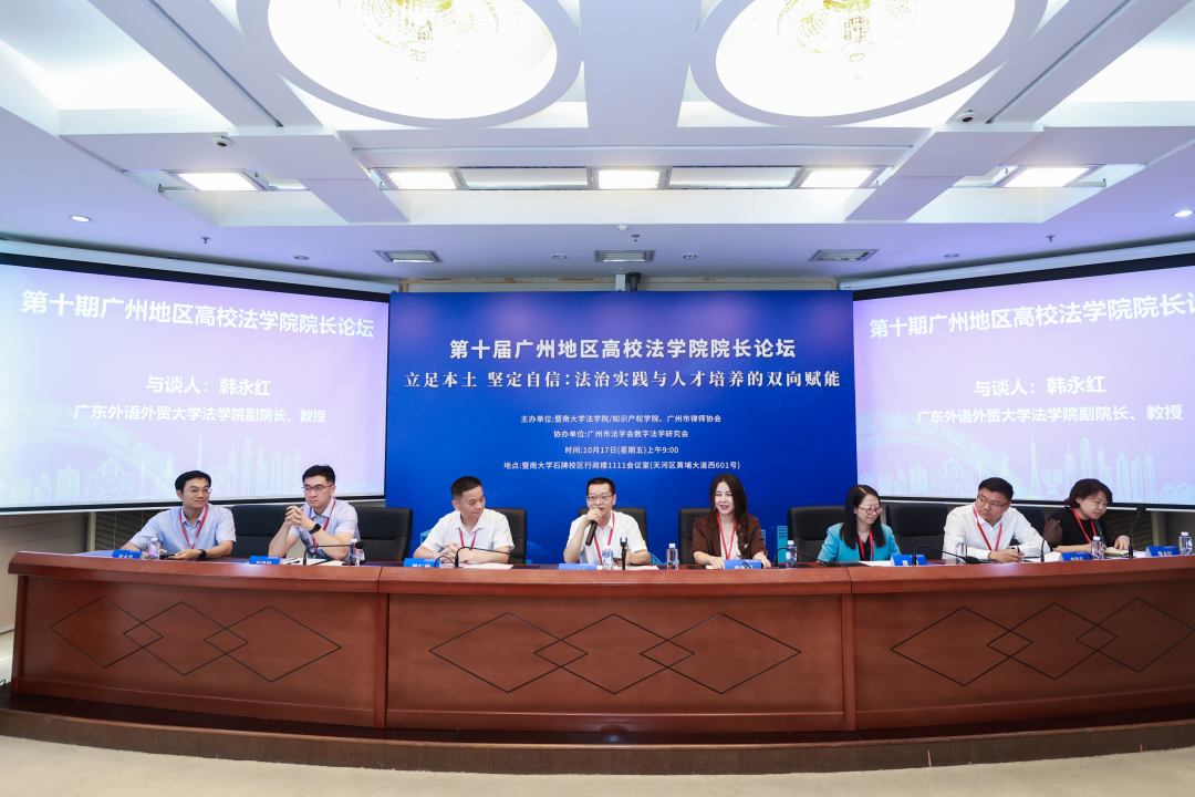 10月17日,由暨南大学法学院/知识产权学院、广州市律师协会共同主办,广州市法学会数字法学研究会协办的第十期广州地区高校法学院院长论坛在暨南大学石牌校区举行。论坛以“立足本土,坚定自信:法治实践与人才培养的双向赋能”为主题,邀请境内外部分知名高校法学院院长和广州地区8所高校法学院院长及法律实务界人士等深入开展交流研讨。