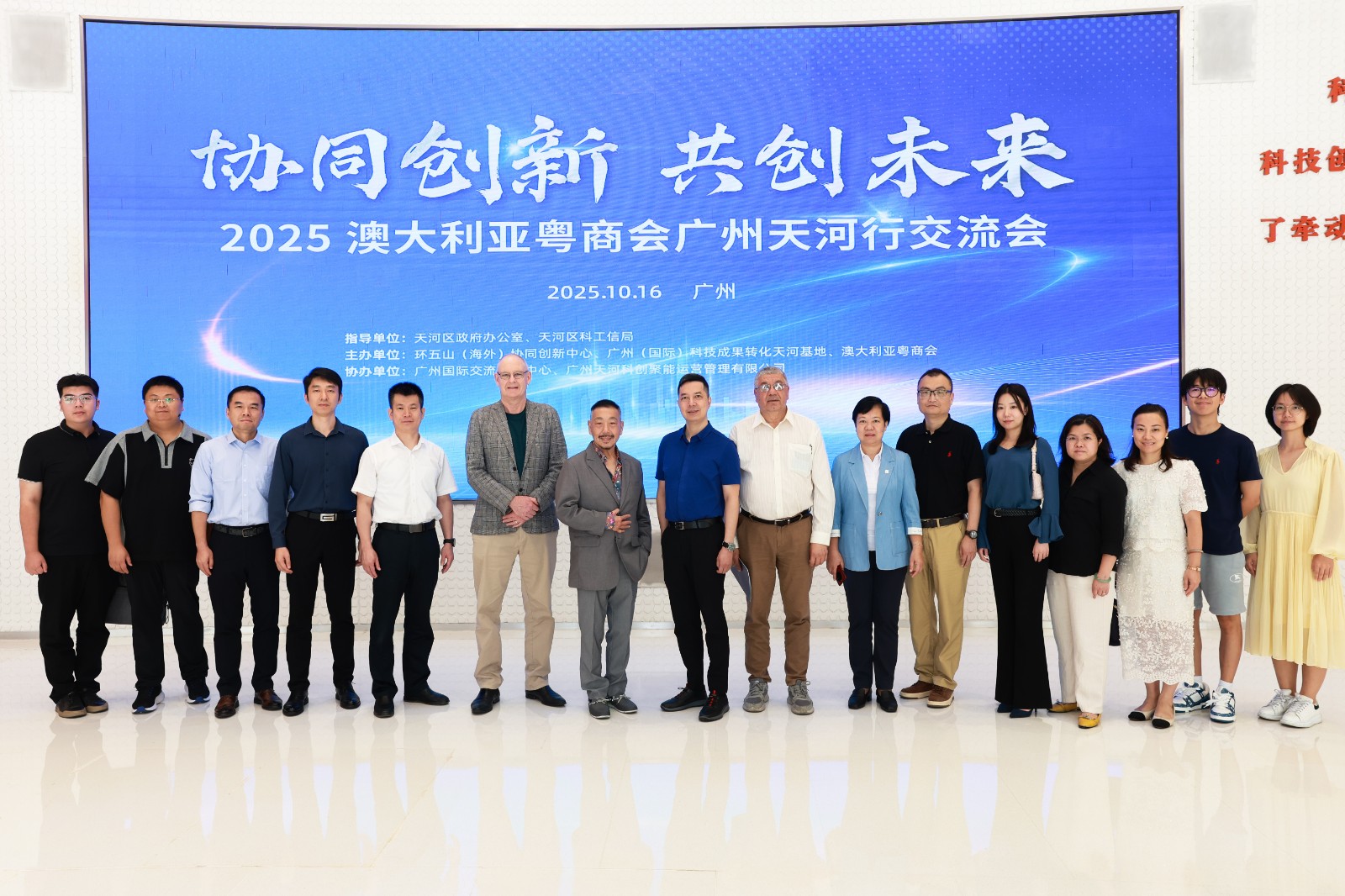 近日,“协同创新,共创未来——2025澳大利亚粤商会广州天河行交流会”在广州成功举办。本次活动在天河区人民政府办公室、天河区科技工业和信息化局指导下,由环五山(海外)协同创新中心、广州(国际)科技成果转化天河基地、澳大利亚粤商会联合主办,广州国际交流合作中心与广州天河科创聚能运营管理有限公司共同协办。活动聚焦广州与澳大利亚在科技创新、产业协同与企业出海等领域的合作潜力,致力于推动广州、天河与国际创新资源的深度融合。