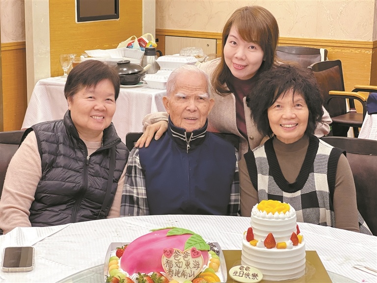 谢桂芳(右一)与妹妹们为父亲庆祝生日。 受访者供图