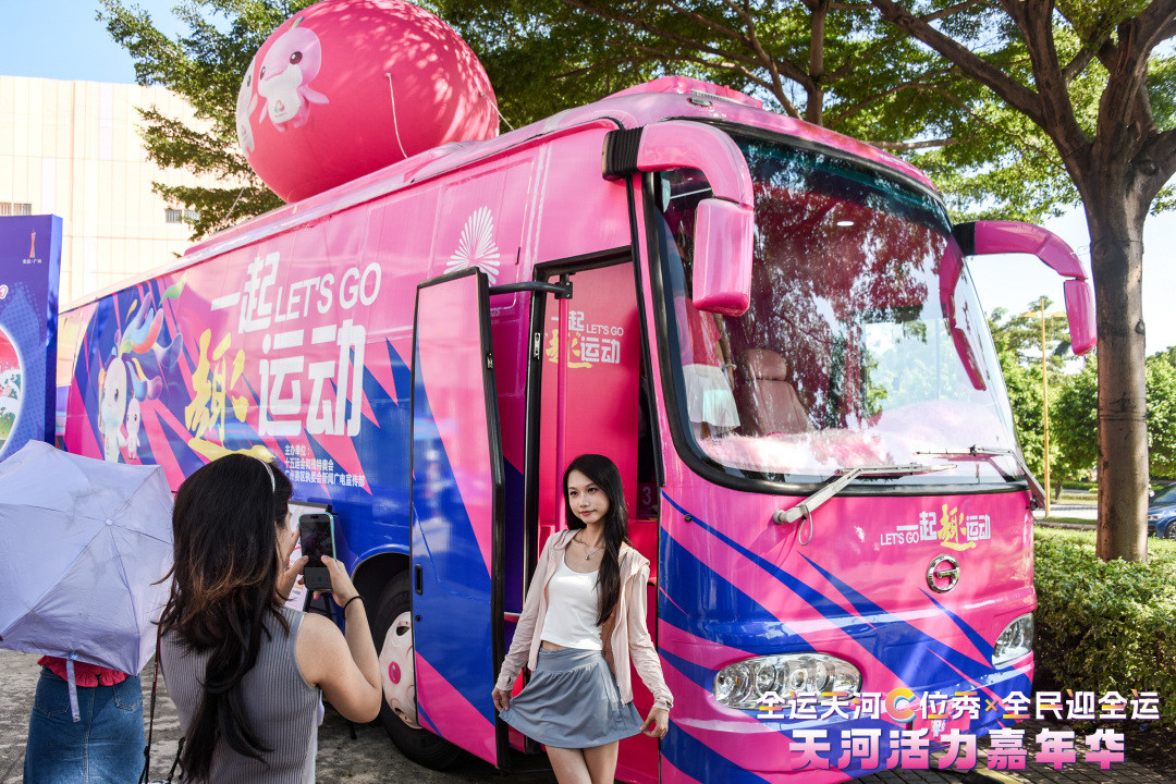 “全运天河C位秀”系列活动自8月8日全民健身日启动以来,依托“一起趣运动”全运主题巴士开展巡游快闪,已驶经天河区21条街道,覆盖多所高校、市民广场、公园、住宅小区等人流聚集区,主题巴士更在活动当天来到了十五运会开幕式所在的黄村街道。